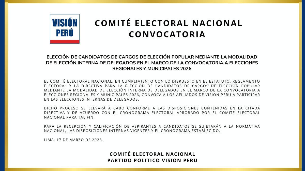 ENCARGADOS DE LA ELECCIÓN DE CANDIDATOS PARA LAS ELECCIONES REGIONALES Y MUNICIPALES 2026 El Comité Electoral Nacional, en ejercicio de sus atribuciones...
